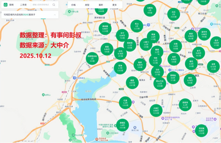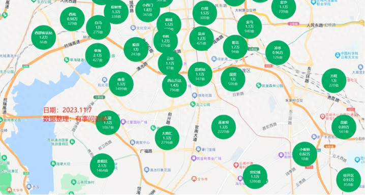 昆明楼市的翠湖板块房价从1.9万降至1.6万,降了3000元。